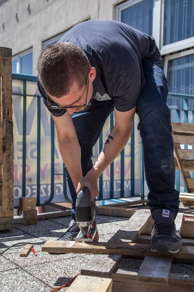 Pierwszym krokiem było stworzenie prezentacji zawierających projekty mebli, ich sposobu wykonania, użycia oraz plan pracy wraz potrzebnymi narzędziami. Do dyspozycji uczestników warsztatów były palety oraz materiały tapicerskie. Po części koncepcyjnej wszystkie grupy żwawo wzięły się pracy.