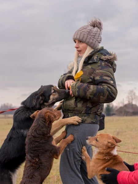 Do Przytuliska pojechali: Paula Sokołowska, Aleksandra Grzyniewska, Adrian Pietrzak, Adrian Wąsowski i Anita Kot, przez dłuższą chwilę witali się z rozmerdanymi na ich widok psami. Bolączką tego miejsca jest nie tylko brak podstawowych rzeczy, ale też zdjęć, które pomagają zwierzakom w znalezieniu domów, dlatego też po rozpakowaniu bagażników ekipa zabrała się do fotografowania podopiecznych jadowskiego Przytuliska. Był też czas na wspólny spacer, rozpieszczanie smakołykami, tulenie, głaskanie i drapanie za uchem czworonogów.